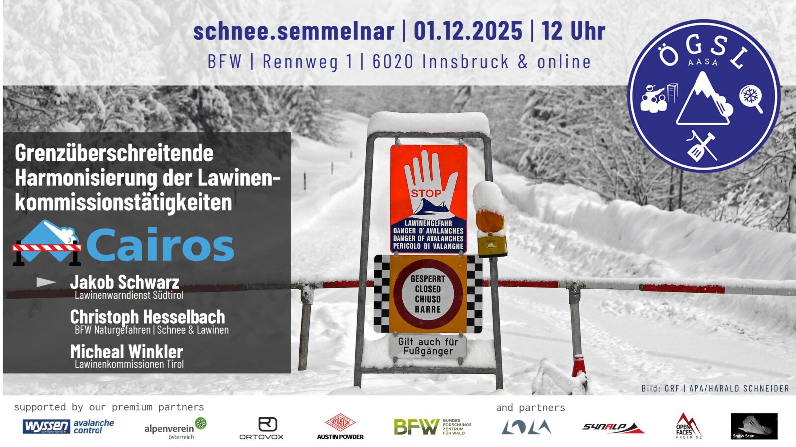 Im Mittelpunkt des Dezember-Semmelnars steht das INTERREG-Projekt CAIROS – Common Avalanche Commission Information, Report and Operations System.