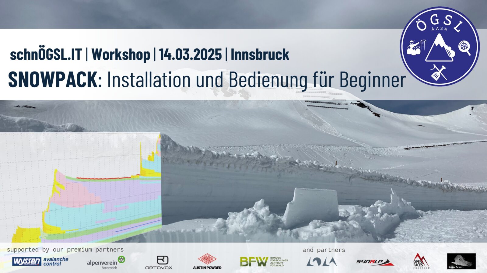 Dieser schÖGSLn.IT Workshop hilft dir von einer aperen Skillbasis zur simulierten Schneedecken-Entwicklung in einem Nachmittag. Installiere Inishell, MeteoIO & Snowpack, lerne die mächtigen Werkzeuge zu bedienen und sei bereit selbstständig zu modellieren.